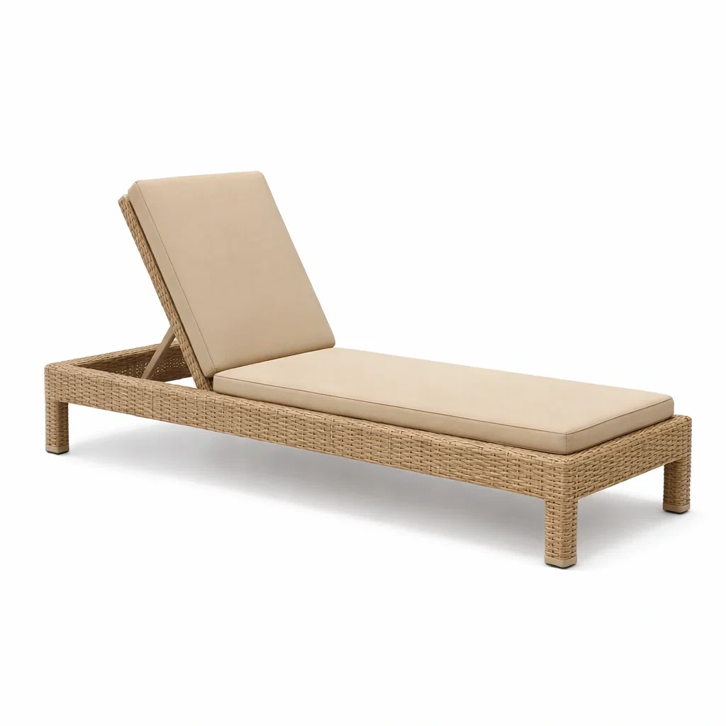 Cette chaise longue est fabriquée avec un cadre en aluminium et recouverte de résine tressée. Les coussins sont en tissu polyester et rembourrés de mousse pour un confort accru. Le dossier est réglable.