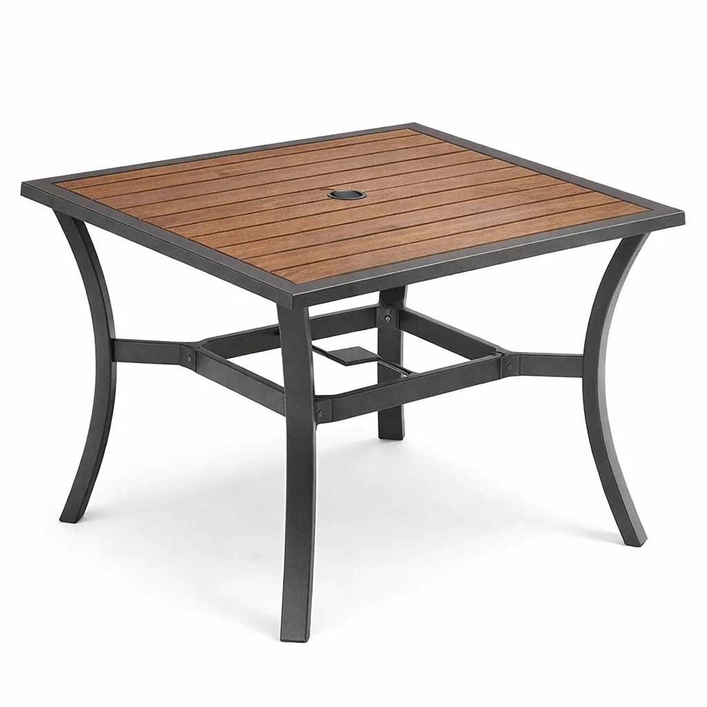 Plateau en bois composite avec structure en aluminium. Couleur : Marron/Noir.